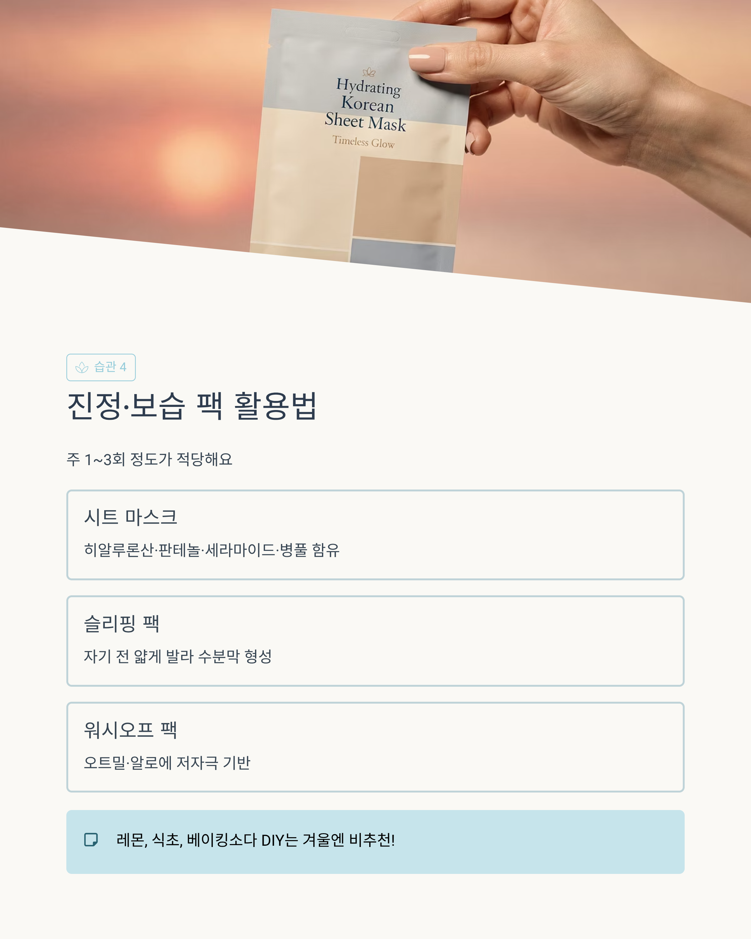 4) 겨울에 더 잘 맞는 팩- “미백”보다 “진정·보습” 중심으로