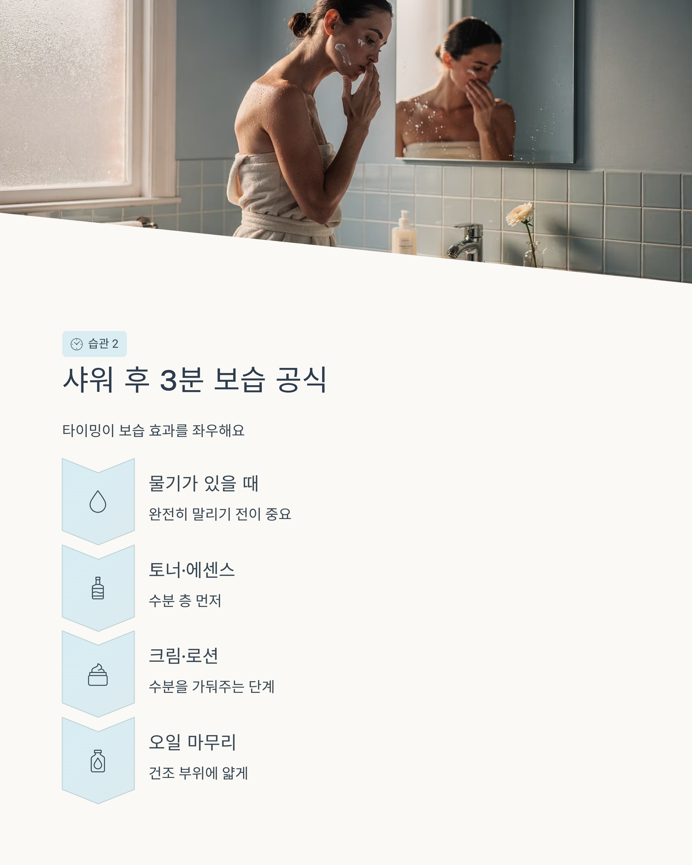 2) 샤워 후 3분 보습 공식- “얼마나 바르느냐”보다 “언제 바르느냐”