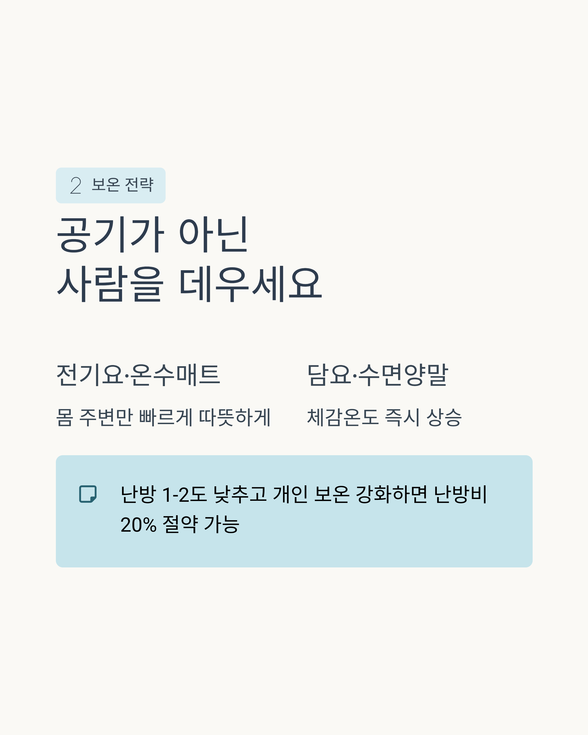 2) 집 전체 공기보다 ‘내 몸’을 먼저 따뜻하게