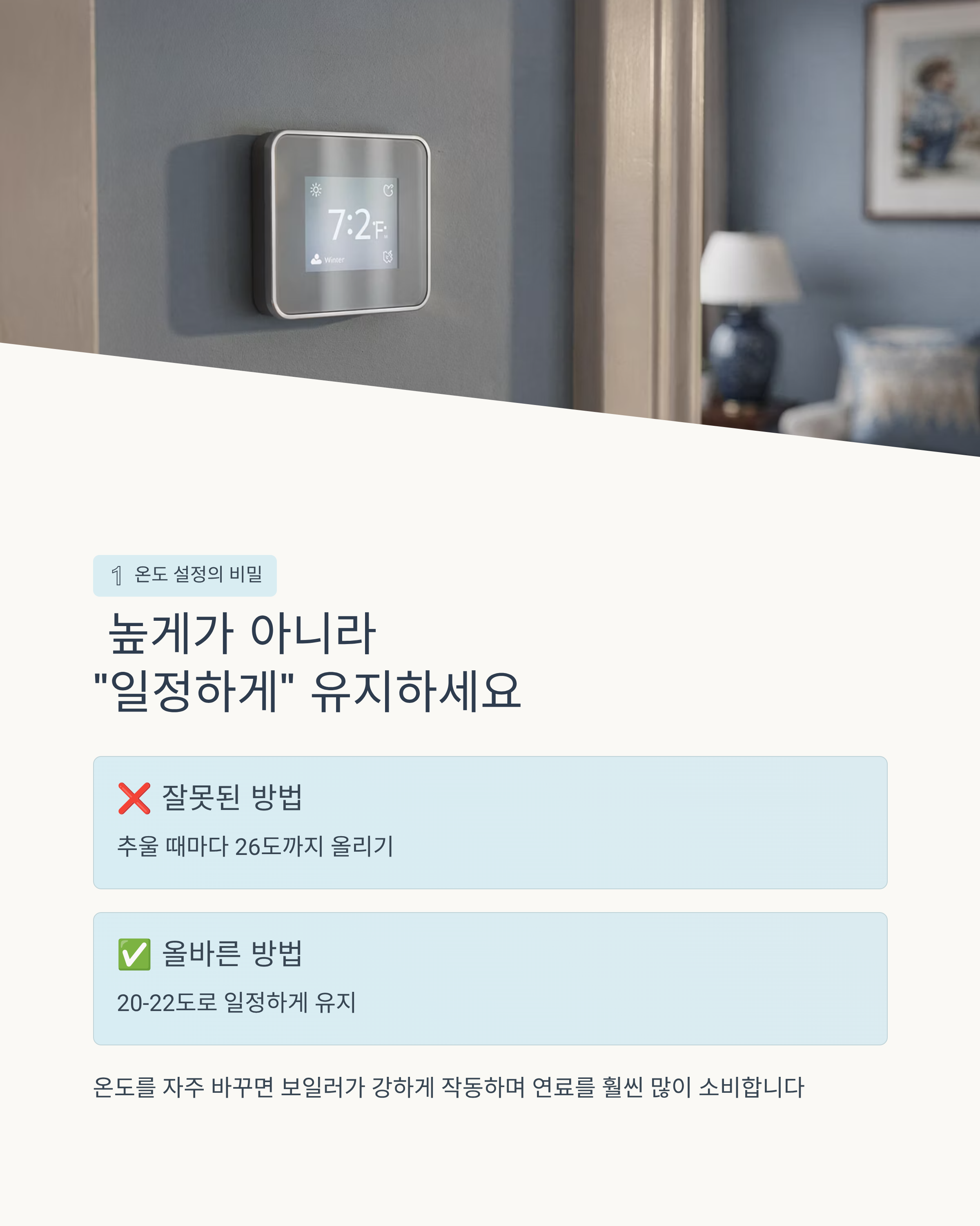 억지로 아끼려다 감기 걸리거나, 집이 너무 차가워져서 오히려 보일러를 더 세게 돌리는 경우도 많고요.